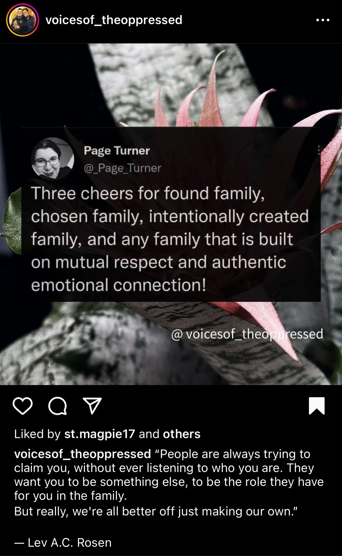 “By expanding the linguistic understanding of family, our expectations of family may also begin to break down. And as people create their own forms of families, our expectations and understandings of what a family is may also begin to shift as we realise the potential of human relationships,” (Manoukian, 2022).